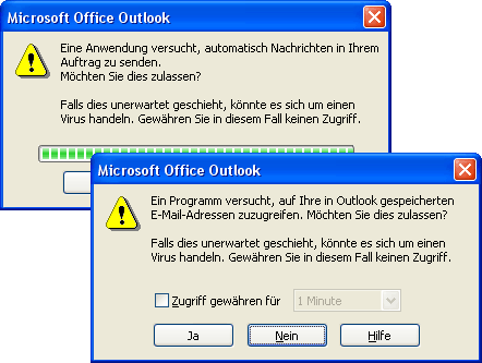 Sicherheitsmeldungen in Microsoft Outlook bei Massen E-Mail befreit.
